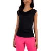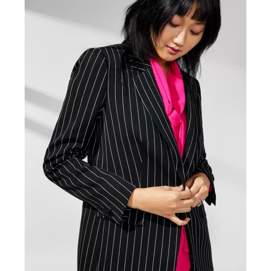 A classically sleek one-button jacket by Anne Klein is effortlessly elevated with a timeless pinstripe, the perfect way to add professional polish to your workweek look.