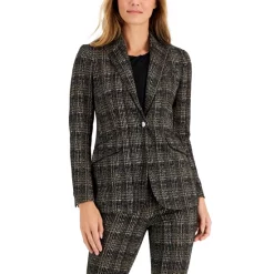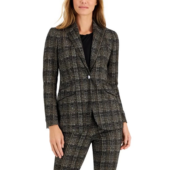 Tailored details polish this chic look from Anne Klein, a menswear-inspired plaid blazer with timeless style.