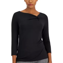 Add a touch of sophistication to your office closet with this top from Anne Klein, finished in a faux wrap design for a flattering look.