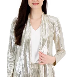 Anne Klein gives your look the perfect finishing touch with this charming topper, a pretty printed duster designed with an open front for added flow.