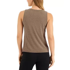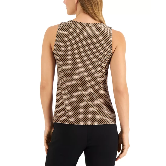 Anne Klein puts a modern twist on a classic crewneck top with this sleeveless shell, an eye-catching printed design finished with a unique knot detail at the front.