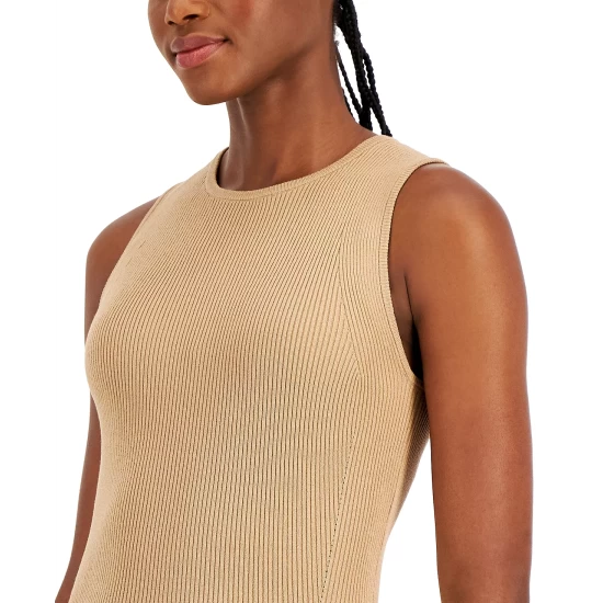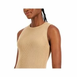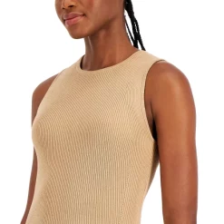 A soft ribbed knit brings structure to Anne Klein’s crewneck top, a sleeveless style that effortlessly layers under blazers and cardigans.