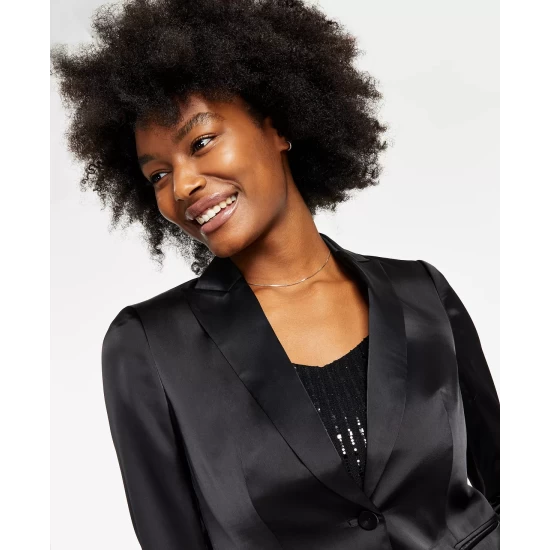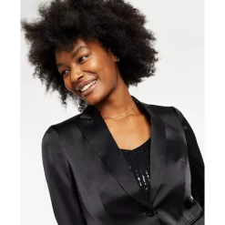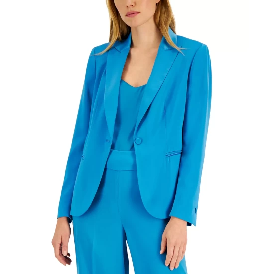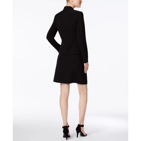 Broad peak lapels frame this polished-to-perfection jacket by Anne Klein, the cut and silhouette of this jacket lend a boldly sophisticated edge so that you can be boardroom ready.
