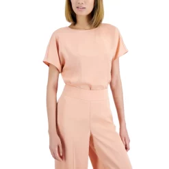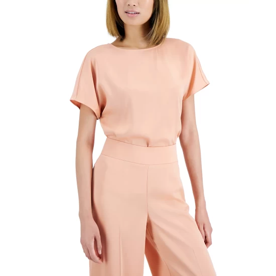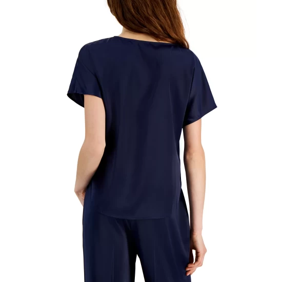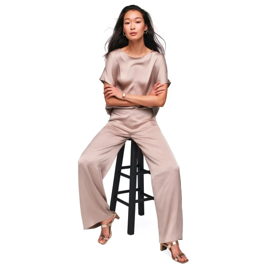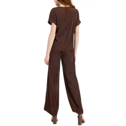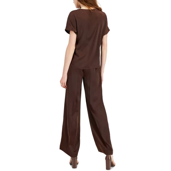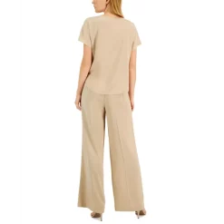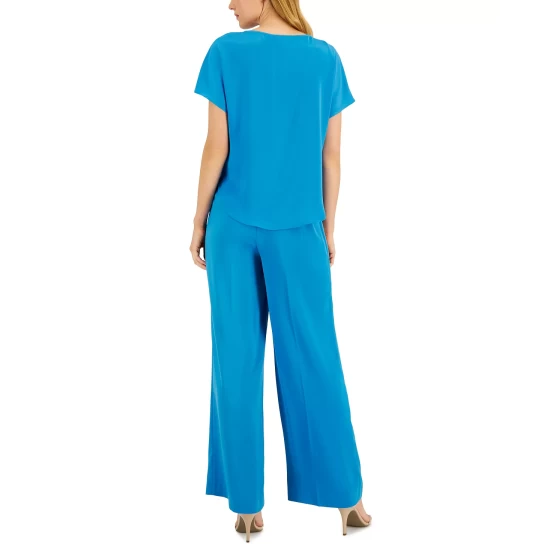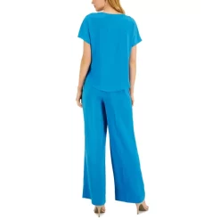 Be stunning in satin with this ultra-chic look from Anne Klein, featuring a boat neck top and flattering wide-leg pants.