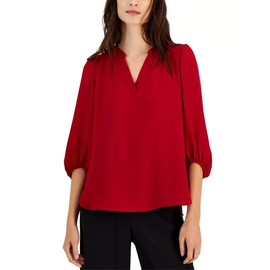 Anne Klein adds sophisticated style to your wardrobe with this split-neck 3/4-sleeve top.