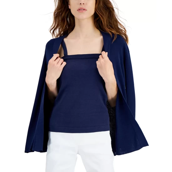 A square neckline and rich sweater knit make this tank top from Anne Klein a smart fit for your career closet.