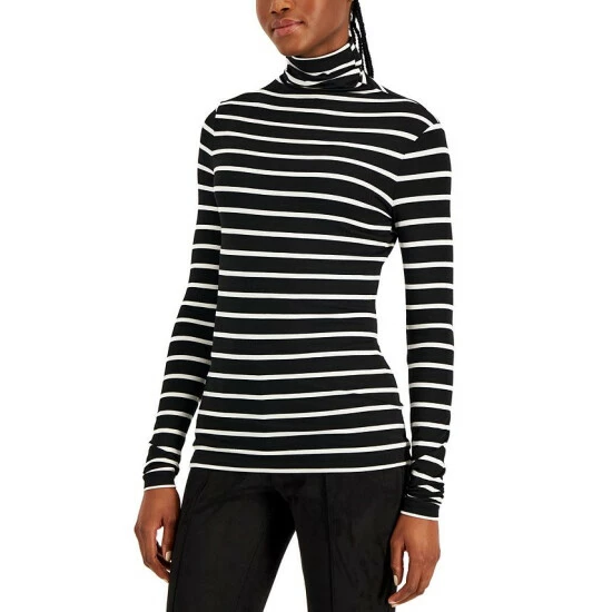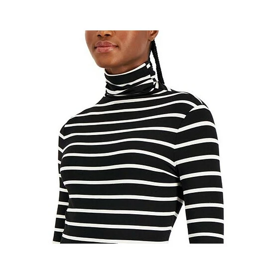 Stretchy, striped and super sophisticated, this seamless turtleneck from Anne Klein looks great layered or alone.