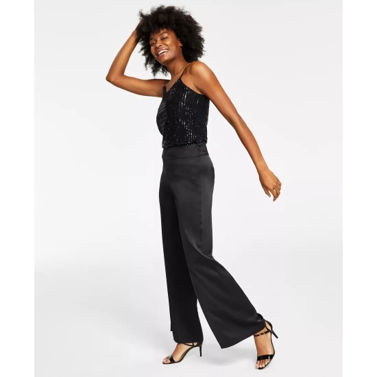 A twisted bodice is paired with sheer, gauzy sleeves on this elegant V-neck midi dress from Anne Klein.