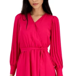 Pleated sleeves bring stylish effect to this women’s dress from Anne Klein, featured with a self tie belt at the waist for added definition.