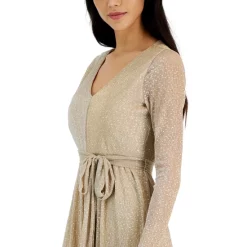 Shimmer and shine at your next event in this women’s maxi dress from Anne Klein, featured with a self tie belt at the waist for added definition.