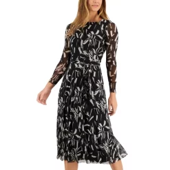 Shimmer and shine at your next event in this women’s maxi dress from Anne Klein, featured with a self tie belt at the waist for added definition.