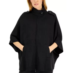 A striking layering piece, this zippered knit cape from Anne Klein combines the best elements of a cardigan, jacket and shawl in one.