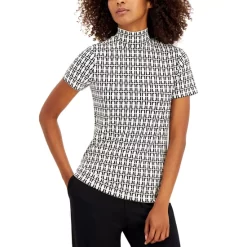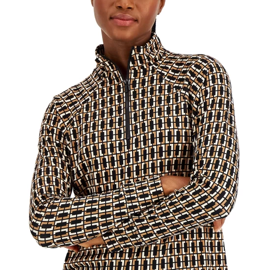 A knit top with a sporty finish, Anne Klein’s quarter-zip top looks excellent under blazers or leather jackets.